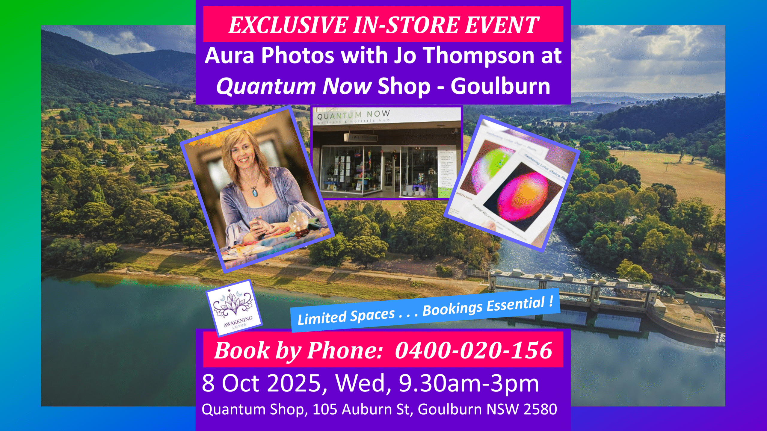 Exclusive Event: Quantum Now Shop, Goulburn – Aura Photos with Jo Thompson (Exclusive & Limited Event) 27 September 2025 – Posted in: Blog