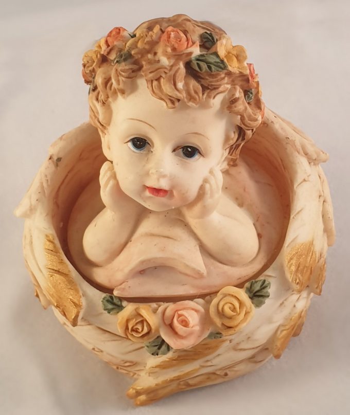 Lovely Cherub wrapped in wings as a container for keepsakes or jewellery.