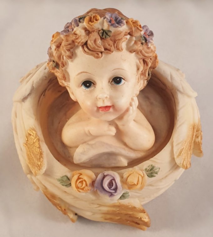 Lovely Cherub wrapped in wings as a container for keepsakes or jewellery.