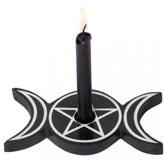 Black Soapstone painted with Triple Moon Goddess & Pentagram