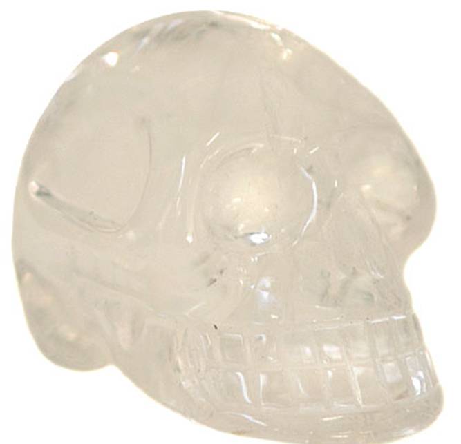 Crystal Carvings – Clear Quartz Skull – Small Beautifully handcarved Skull. 1.5cm high and 2cm long. Clear Quartz: romantic and powerful; cooling powers; healing; amplifies energy of other crystals; meditation; has a similar vibration to humans thus helps when meditating to understand oneself.