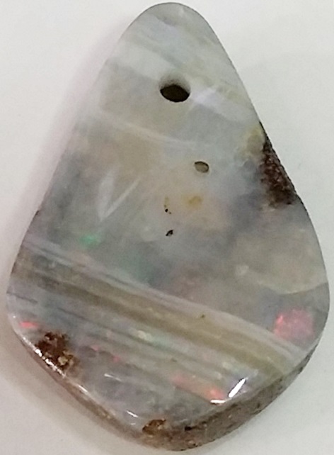 Cut and polished Boulder Opal with hole drilled for necklace or leather from Queensland, Australia.