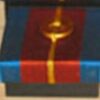 Black wooden box with Thai Silk floor. And Blue Thai Silk with a Centre of Brown Thai silk and a Gold Donut.