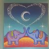 Two elephants in Love making stardust Heart in the moonlight sky.