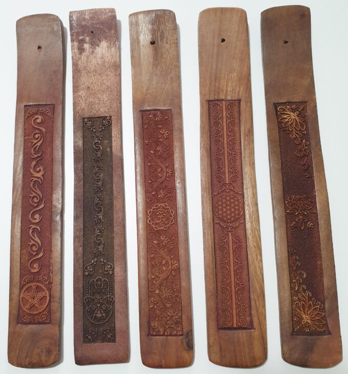 Flat Wooden ashcatcher with exquisite carvings. Holds incense sticks and catches ash.