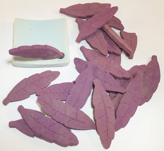 Leaf incense with a Blue porcelain tile incense holder.