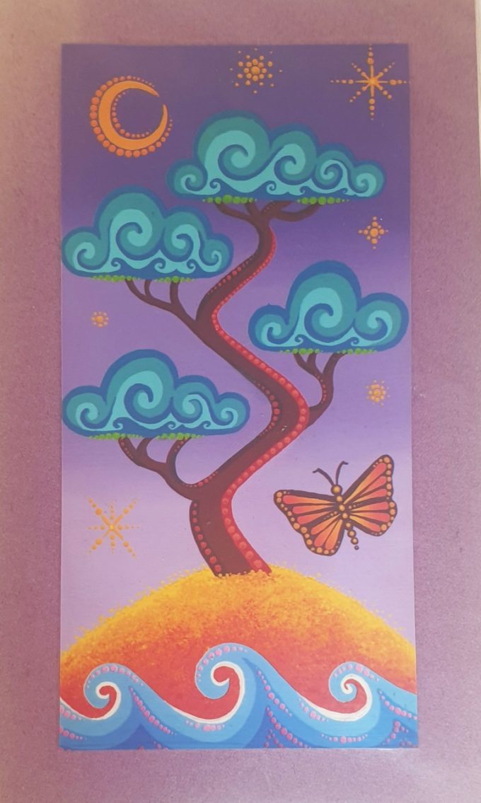 Fabulous tree on an island bathed in moonlight with a butterfly.
