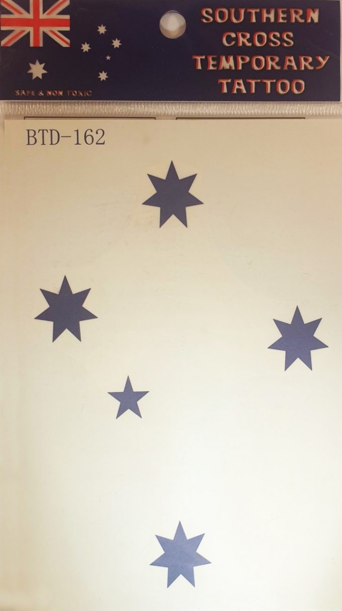 Temporary tattoos of the Australian Southern Cross with instructions.