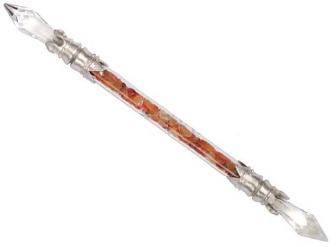 Wands – Crystals – Pewter & Swarovski Double Terminated – Carnelian Chips